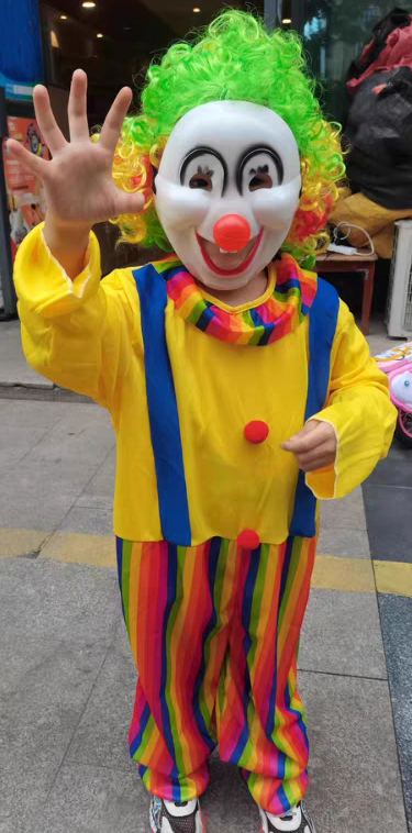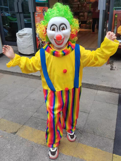 Complete Costume Set: The set includes everything needed to transform into a cheerful clown, featuring a colorful costume, wig, and a mask.